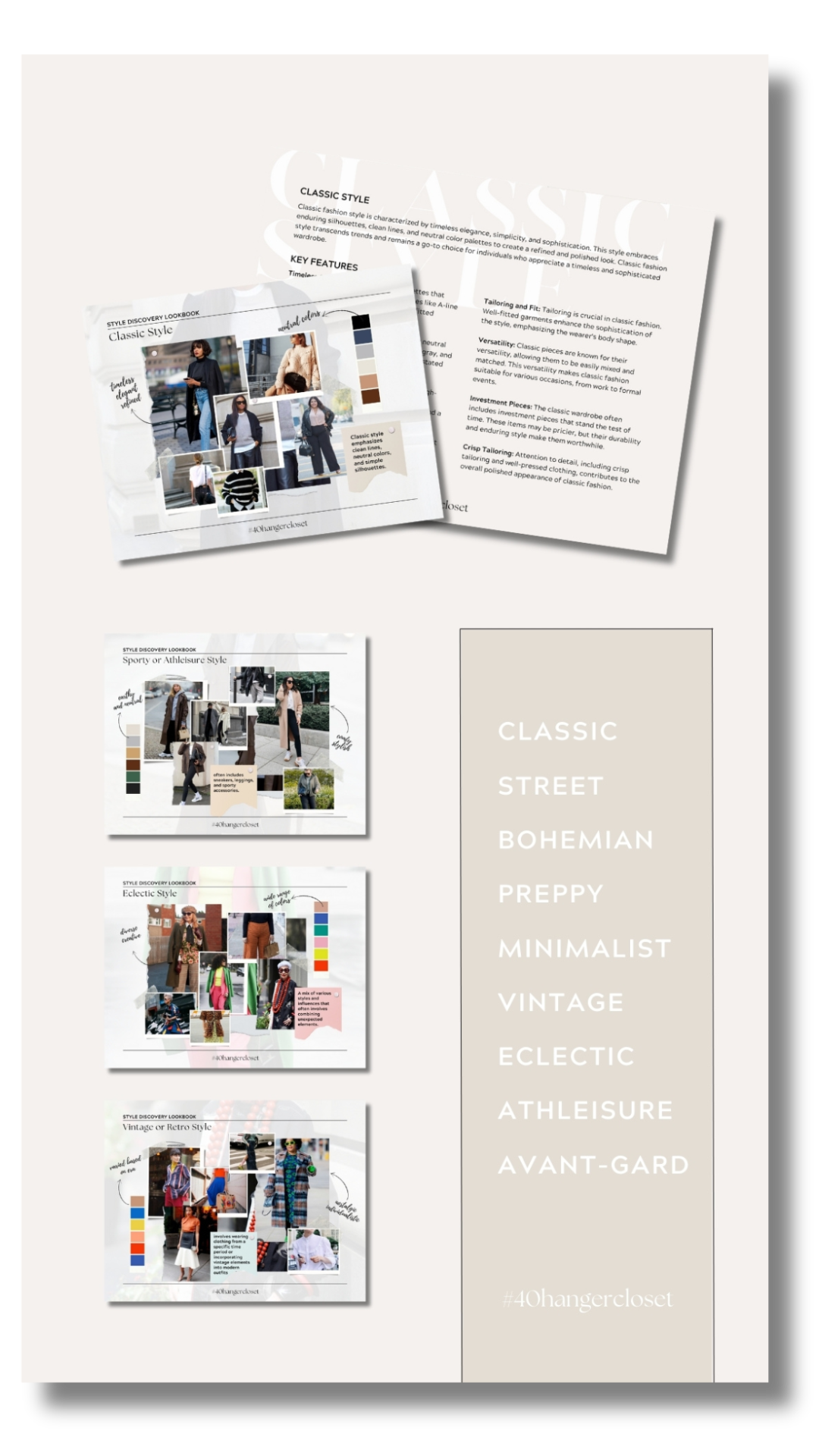 This is your FREE guide to discovering styles you love. In these pages, you’ll find color palettes, visuals, and definitions for nine different fashion styles.